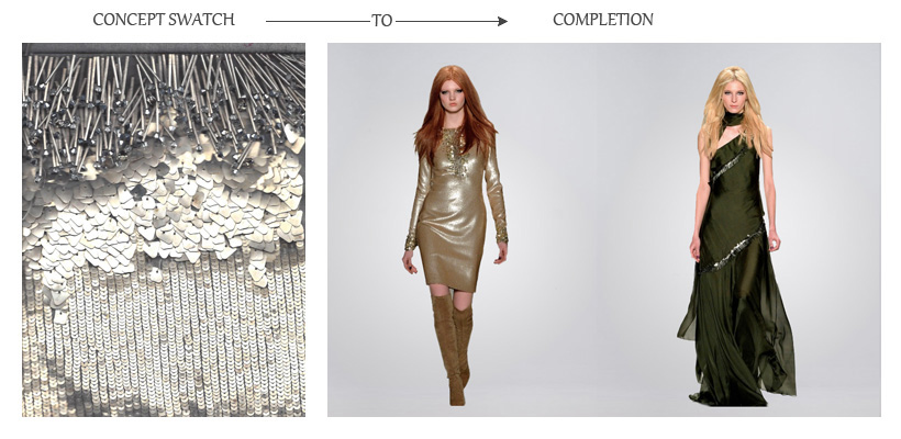The Company's collection of swatches are dated and archived from the 1970'S when Embroidered Couture was the Embroidery Designer And Producer for the houses of JEAN LOUIS SCHERRER, LOUIS FERAUD, GEOFFREY BEENE, and other old Coutouriers.